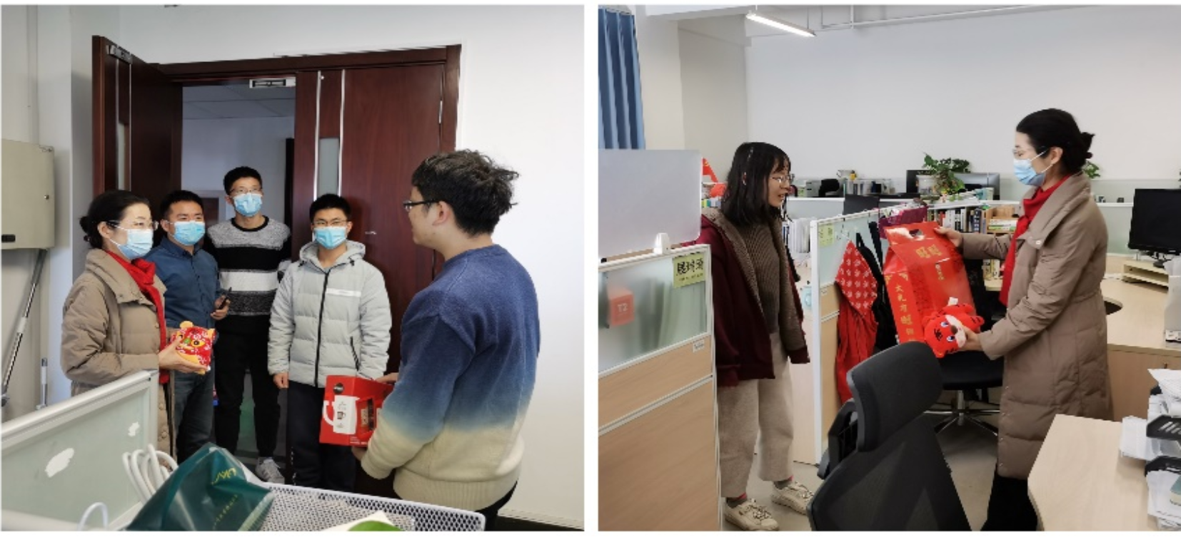 关爱员工,加强服务保障。农历腊月二十五,公司党委书记卜春梅、党委副书记王硕、团委书记马腾和多位留校辅导员老师,一同走访慰问了寒假留校员工,为他们送去新春的祝福与问候,并发放慰问品。春节前,王硕随学校领导一行,学院团委书记马腾随校团委一行,两次到达延庆制服与注册中心慰问冬奥志愿者,各年级辅导员也行动起来,了解志愿者生活上的诉求,帮助协调解决日常生活难题。为促进员工寒假不停学,本科2018级、2021级分别开展学困生线上交流、辅导员联系挂科员工等工作,在鼓励员工增强信心的同时,督促其充分利用寒假时间弥补知识漏洞,完善知识框架。
