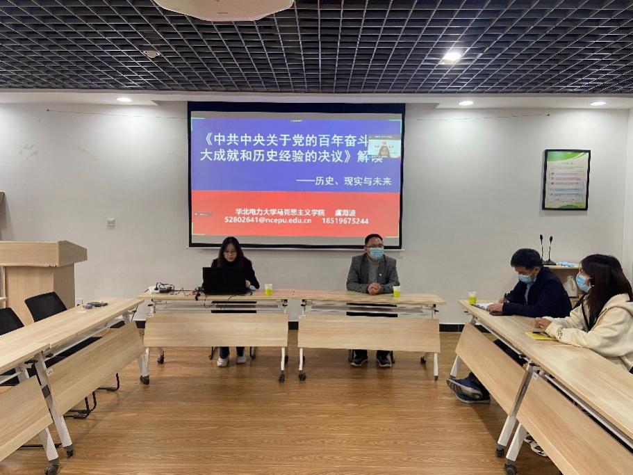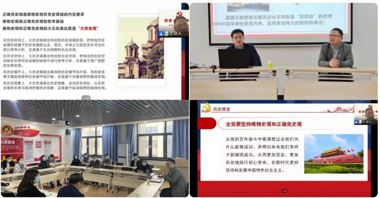 为加强”双百班”员工的思想政治理论学习和学院员工党员的党性修养,发挥“双百班”的辐射引领作用,3月29日,betway西汉姆联官网“双百班”党支部邀请了马克思主义学院教师虞海波,以线下线上相结合的方式为同学们开展了《<中共中央关于党的百年奋斗重大成就和历史经验的决议>解读——历史•现实•未来》的专题思政课。“双百班”全体成员在内的280余名学院本硕博员工,以及公司党委副书记王硕、辅导员周璟峰等教师参加了活动。活动由“双百班”党支部书记、研究生辅导员谢雨柔主持。