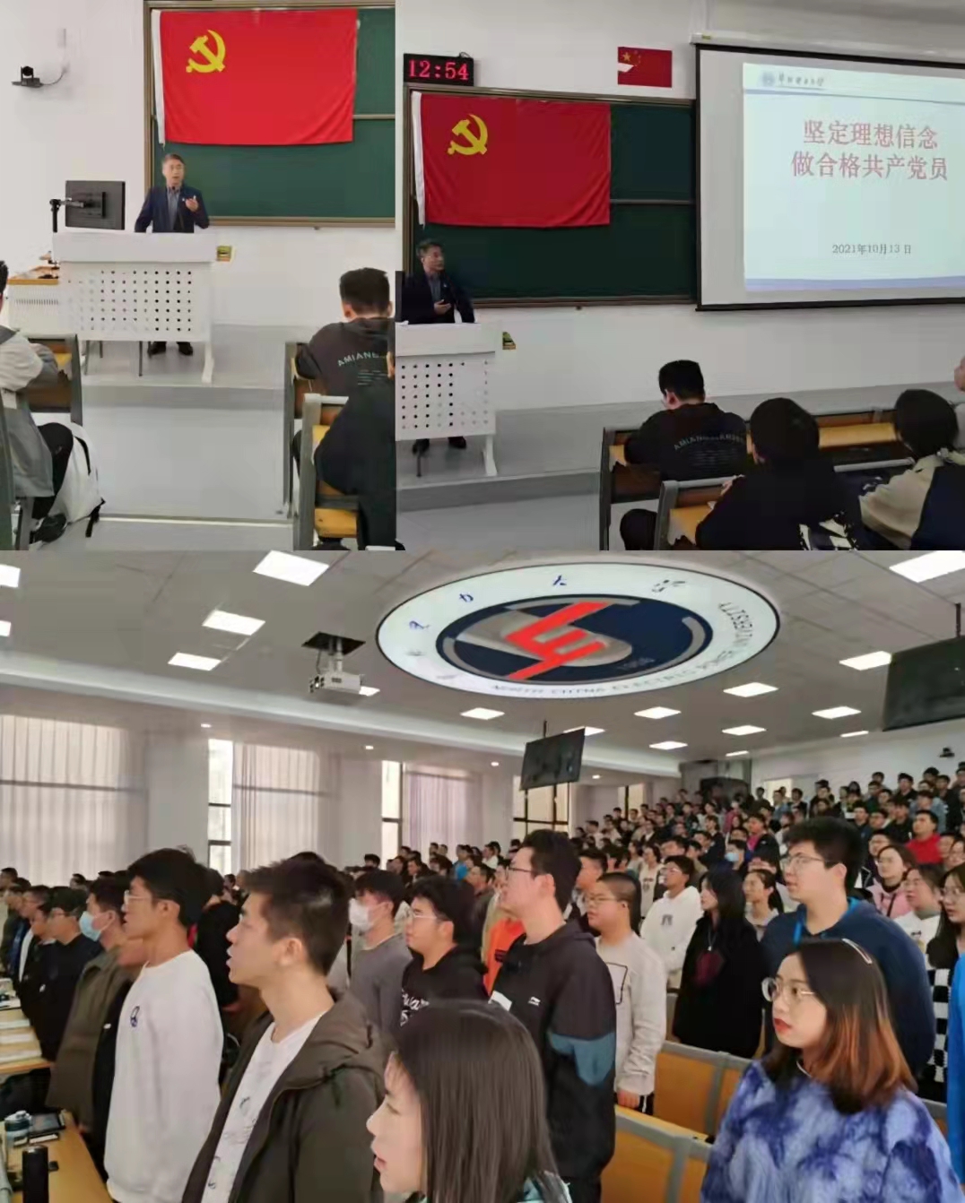 张宝良老师以“坚定理想信念,做合格共产党员”为题,为同学们讲了第一次党课。首先为同学们介绍了中共中央开展“两学一做”学习教育活动的背景、内涵。接着学习习总书记讲话中指出的党的理想信念是马克思主义信仰、共产主义远大理想、中国特色社会主义共同理想,就是为中国人民谋幸福、为中华民族谋复兴的初心和使命。最后讲述做一名合格共产党员,要做到四个合格:一是政治合格,“讲政治、有信念”是共产党员党性的核心要素,也是作为合格党员的首要标准和第一要求;二是执行纪律合格,一个人没有规矩,很难成为一个合格的社会人,一个拥有8900多万党员的大党,没有纪律和规矩,就会成为一盘散沙;三是品德合格,讲修养、讲道德、讲廉耻,是共产党人坚定理想信念、坚守精神家园的“正气”,党的肌体的细胞就是一个个党员,细胞健康,才有肌体的健康;四是发挥作用合格,每个共产党员都有强烈的宗旨意识和责任意识,要在平常时候看得出来、关键时刻站得出来、危急关头豁得出来,充分发挥先锋模范作用。