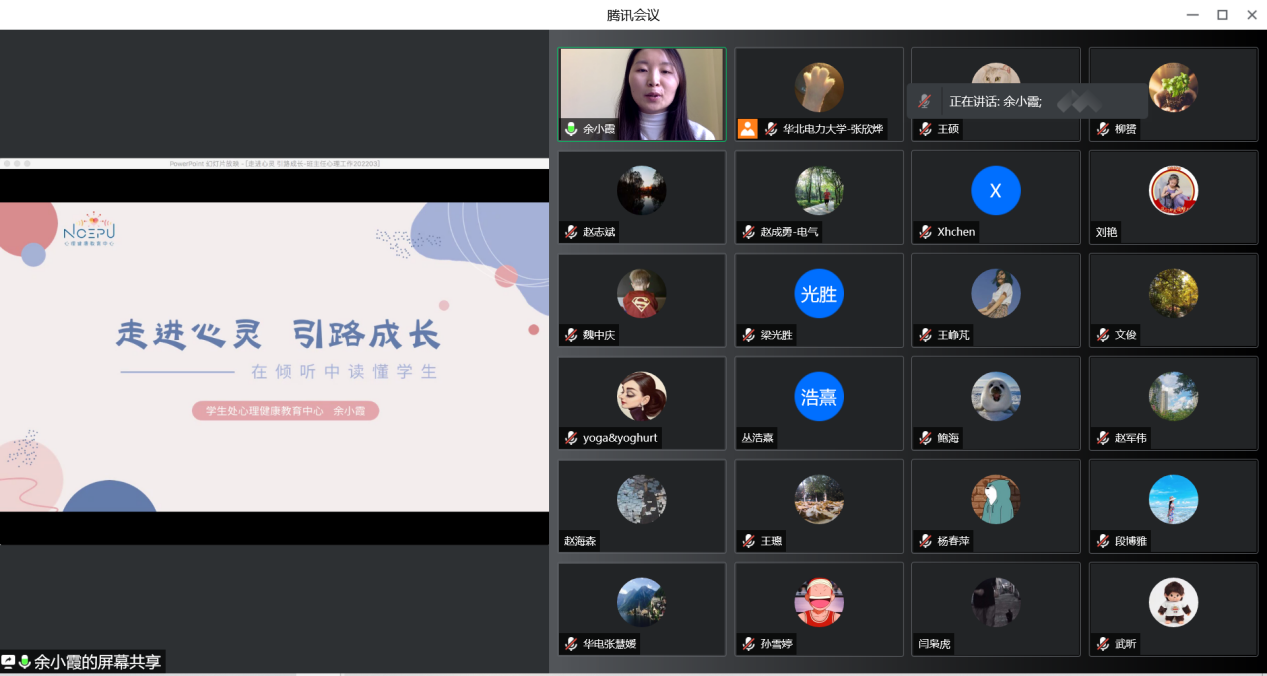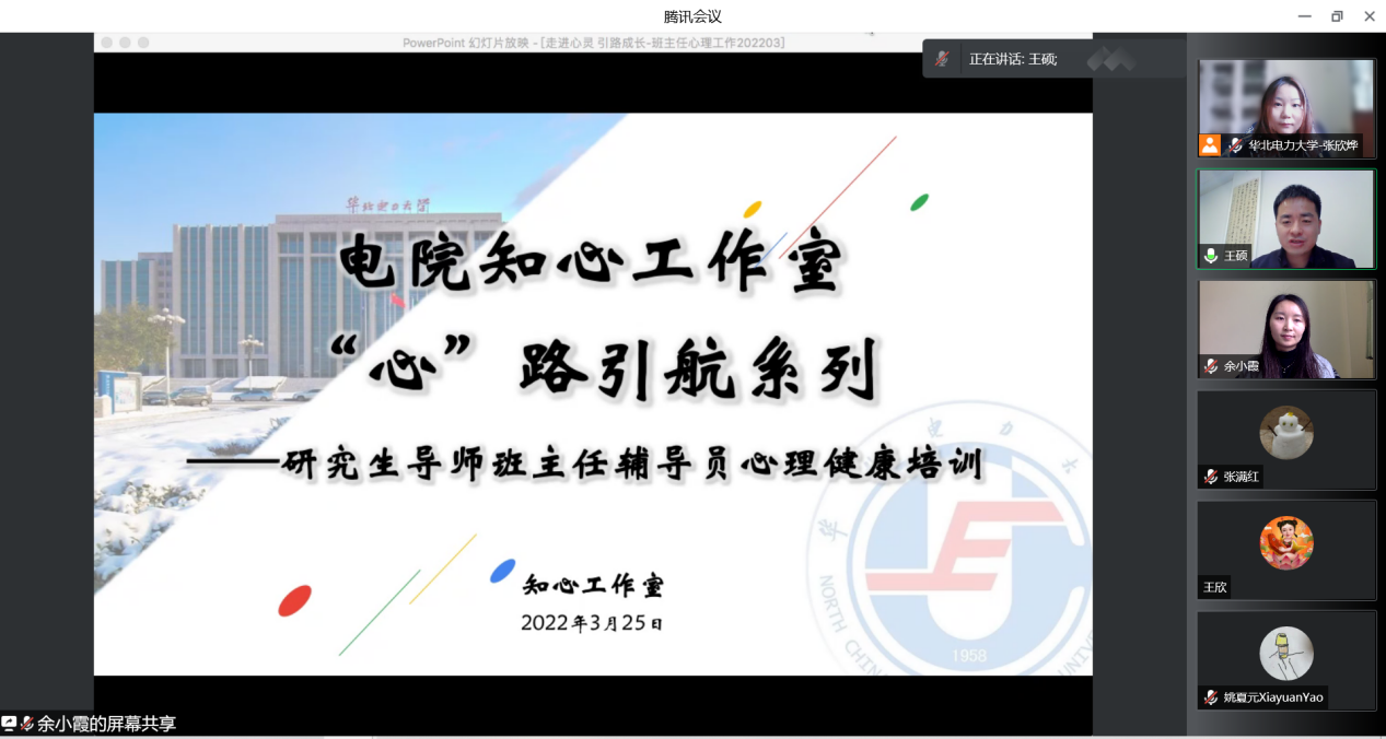 为积极促进老员工健康成长,努力增强研究生导师、班主任、辅导员心理育人工作能力,充分发挥二级心理辅导站作用,betway西汉姆联官网由知心工作室组织,于3月21日、3月25日以线上的方式分批次召开心理健康教育工作培训会,特别邀请学校心理健康中心教师余小霞为大家带来了“走进心灵,引路成长——在倾听中读懂员工”为主题的培训。近百名研究生导师、班主任、辅导员参加了培训,全体兼职辅导员也参加了培训。培训由学院知心工作室负责辅导员张欣烨主持。