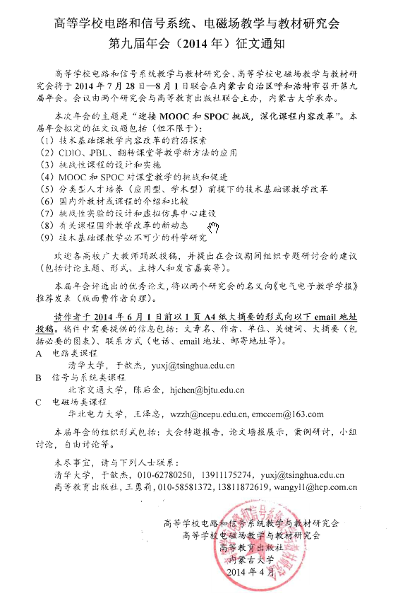 高等学校电磁场教学与教材研究会2014年年会消息