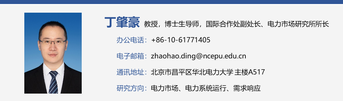 丁肇豪,betway西汉姆联官网教授,博士生导师,国际合作处副处长、电力市场研究所所长,入选第六届中国科协青年人才托举工程、北京市优秀人才培养资助计划,长期从事信息-物理-社会视角下电动汽车、数据中心等分布式需求侧资源聚合响应、灵活调控、交易机制等领域的研究工作。主持国家重点研发计划政府间合作专项、国家科技重大专项课题、国家自然科学基金、国家能源局等国家级和省部级纵向以及国家电网、南方电网、阿里巴巴等横向科研项目20余项,发表SCI/EI期刊论文90余篇,授权专利30项。作为主要成员参与了多个省市和区域电力市场建设方案的研究和起草工作。获IEEE工业应用学会青年杰出成就奖、黑龙江省科技进步一等奖、联合国工业发展组织Global Call全球一等奖、中国电工技术学会科技进步一等奖、中国电机工程学会电力优秀青年科技人才奖等学术奖励。担任多项学术兼职,其中包括IEEE IAS Energy System Committee副主席/论文评审主席,中国电机工程学会能源系统专委会副主任委员,北京电机工程学会电力系统专委会秘书长,IEEE Transactions on Smart Grid, IEEE Transactions on Industry Applications等期刊编委等。