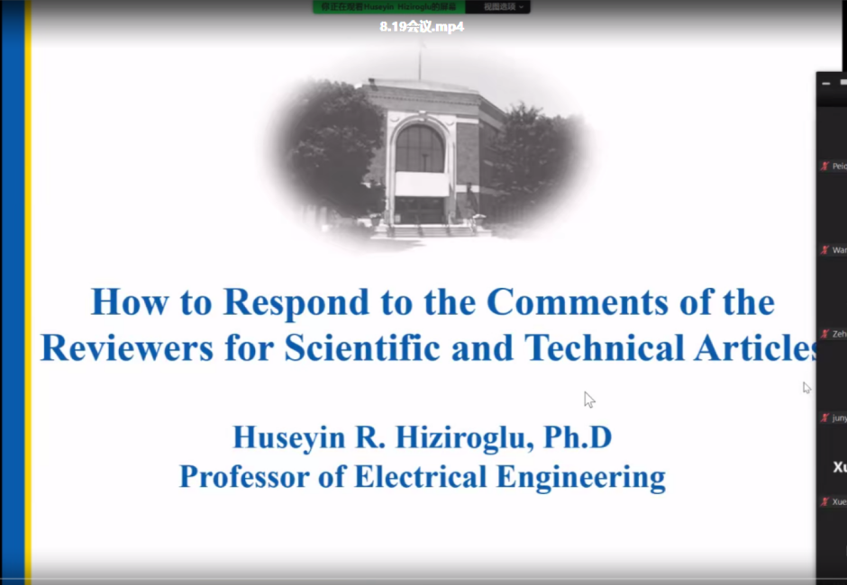 本次专题讲座分为两部分,主题分别为“How to Write Scientific and Technical Articles”及“How to Respond to the Comments of the Reviewers for Scientific and Technical Articles”。会上,Huseyin教授结合自身多年的科研及工作经验,详细讲述了从论文形成到投稿录用的全过程。Huseyin教授介绍了行文前需要培养的论文写作思维、写作时论文每部分结构的组成与细节、投稿后如何妥当回应审稿意见等,并针对投稿、回复时需要注意的问题给出了专业的建议。现场提问环节,多名教师和同学打开摄像头踊跃提问,积极交流,会场气氛热烈,Huseyin教授耐心地解答了师生们关于论文写作安排、回复审稿意见等相关问题,对betway西汉姆联官网今年来在新型电工材料、高电压绝缘学科领域取得的成绩表示了高度认可和赞赏,对betway西汉姆联官网师生为IEEEDielectrics and Electrical Insulation Society、IEEE Transactions on Dielectrics and Electrical Insulation所作出的贡献表示感谢,对同学们的科研工作表示了祝福与期望。Huseyin教授强调,要时刻保持科学、专业、严谨的态度,虽然科研之路或有艰辛,但个人也能够在研究过程中增长见识、获得提升,最终能够为科技界中自己的专业领域做出贡献,寒窗苦读,终有所得。