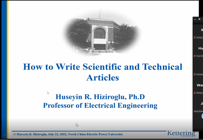 2022年7月22日及8月19日,betway西汉姆联官网邀请了IEEE Transactions on Dielectrics and Electrical Insulation主编、美国Kettering大学Huseyin R. Hiziroglu教授做成果提炼、论文写作的系列专题讲座。讲座由学院电磁与超导电工研究所卞星明教授主持,电院双百班学员及电磁所、高压所博士生、硕士生近200人聆听了两次线上报告。