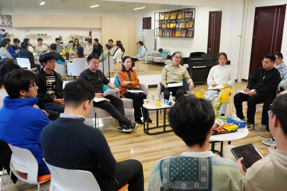 今年以来,学院切实把心理健康工作摆在更加突出位置,制定了全年工作计划,邀请人大胡邓教授等知名专家开展“心路引航”系列讲座3场,策划开展了“同心协力”团体素拓、“心音影动”观影、“书香润心”读书成果分享、“三行情诗”创作大赛等丰富多彩的心理育人活动;并开放“知心咨询室”,邀请回龙观医院张艳萍医生每周到院开展心理咨询。举办“知心座谈会”也是学院加强心理健康工作的重要活动之一。后续,学院将每双周举办一次“知心座谈会”,聚焦影响员工心理健康的学业、就业、毕业等关键环节,直接了解和前置解决员工最关心关注的问题,将这一师生零距离、面对面的交流平台建的更实,在院内营造出师生关系融洽、有事畅所欲言的良好氛围。
