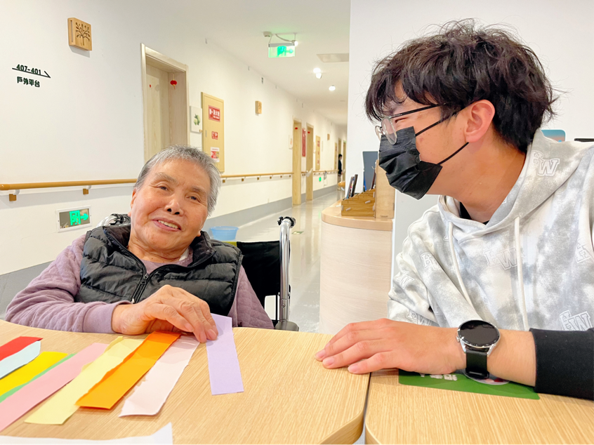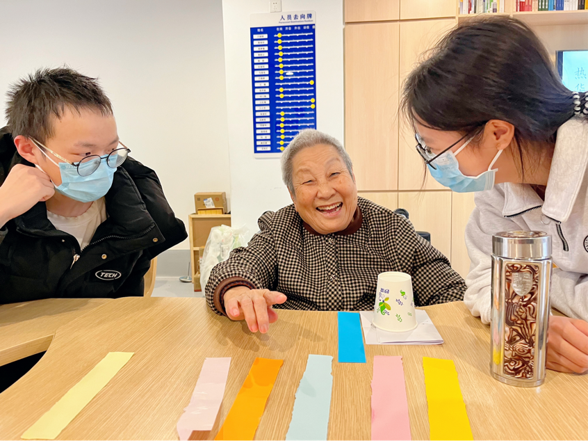 志愿者们一对一陪伴老人们聊天谈心,侧耳倾听他们的故事,共享美好的午后时光。同时,志愿者们也准备了一些互动游戏,如用纸杯盖数字和抢不同颜色的彩纸条等,志愿者们耐心地为老人们讲解规则,并适当提供指引,让每位老人都参与其中,用真诚的陪伴驱散老人们的孤独。