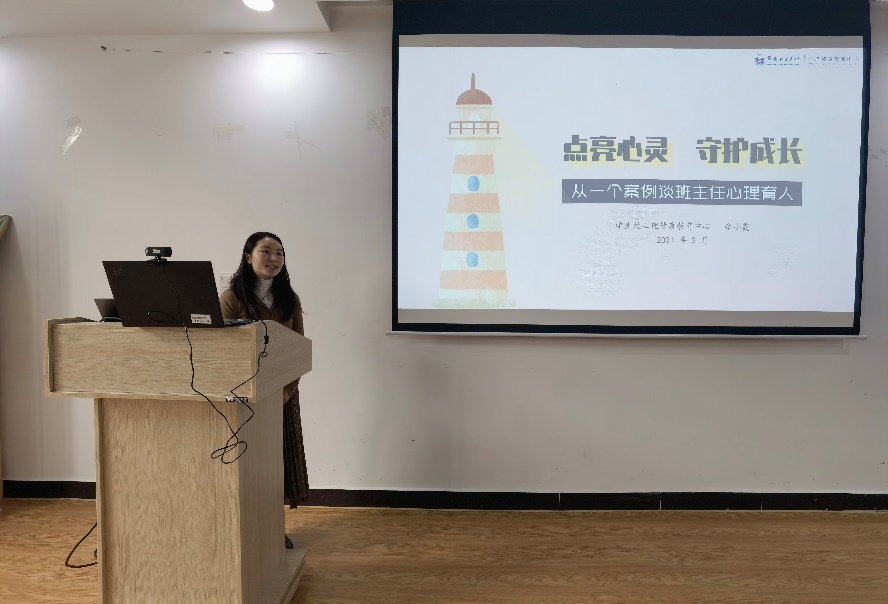 余小霞以一个案例为开始,谈及班主任工作中心理育人的重要性,同时也分享了自己作为班主任的心得体会。余小霞指出季节转换和人的心理状态有着密切的关系,认为人对外在环境的感觉是自己内心的一种投射,两者很容易相互影响,因此希望班主任老师在员工返校后能够和每个员工见见面聊聊天谈谈心,取得信任关系,关注员工面临的困难,及时加以引导,保障班级员工心理和思想整体良好状态。在进行心理引导时,余小霞认为应该从生理、心理、社会三个层面入手,详尽了解员工的信息,采取“多方协同、解决现实问题、家校充分沟通”三方面的措施,对心理困境的同学开展帮扶。最后,余小霞提出了班主任工作中“要温度也要原则、要尽力也要边界、重干预更重预防、爱员工也要爱自己”四点体会,希望与班主任老师一道“点亮员工心灵、守护员工成长”。