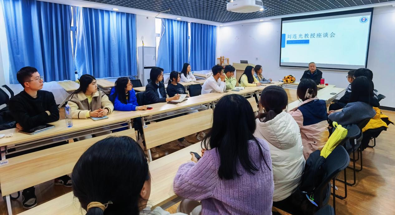 座谈会上,刘连光教授深情回顾了自己从基层工作到深造求学,再到留校任教的奋斗历程。他通过一个个生动的故事,向同学们展示了如何在科研道路上抓住机遇、迎难而上,最终实现自我价值的宝贵经验。