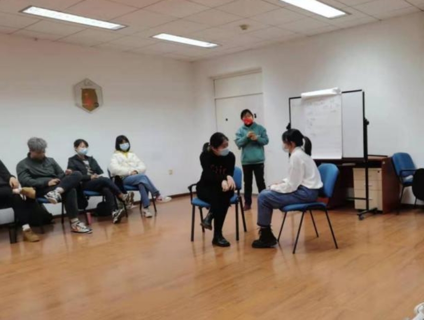 龚珍奇老师介绍保密是心理委员遵循的首要原则,同时她也补充道,涉及同学的生命安全和重大财产事项还需及时向老师汇报。龚老师接着阐明了心理委员的定位,即心理健康的示范者、宣传者、发现者——心理委员们首先要调节好自己的心理状况;作为宣传者,可定期在班级内开展心理宣传讲座等;同时,心理委员在及时发现心理危机同学上也发挥着重要作用。随后,龚老师请两位同学模拟了心理委员与焦虑同学的聊天过程,并向大家介绍了身体前倾等提高沟通效率的方法。