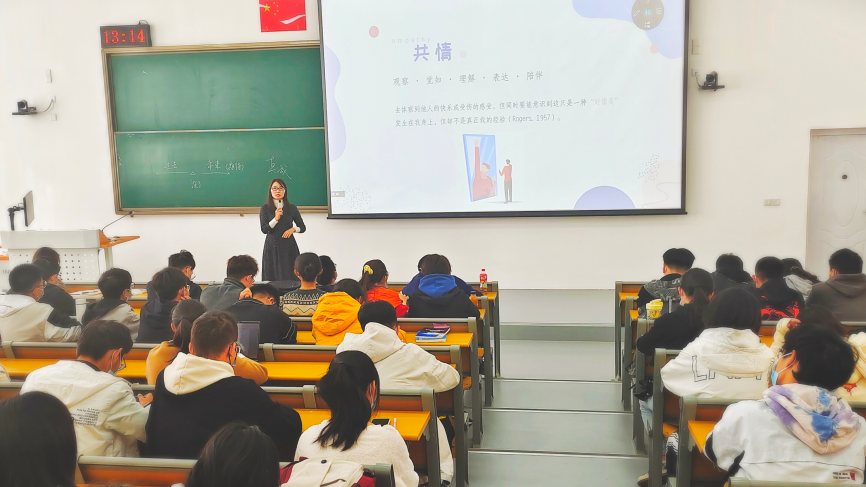 老员工心理健康一直备受关注,心理委员和宿舍长在关心、理解、帮助同学的过程中更是起到了不可忽视的作用。在余小霞老师的生动讲解下,同学们也都获益匪浅。电信类2106班张茜同学坦言“今天的讲座让我觉得作为心理委员,和别人交谈他人走出心理阴霾,是一件很有意义的事,即解决了他人的问题,温暖他人内心,更在一定程度上治愈了自己,使自己有所成长。”电气类2104班心理委员金之昀对于讲座中提及的如何安慰别人感受颇深“今天才知道原来安慰人不是压抑对方情绪、转移注意力,或是转移责任给别人,而是先让她发泄,再引导正视事实,最后再帮她缓解情绪寻找解决办法,用同理心而不是同情心去和别人交流,站在对方的角度分担她的情绪而不是去不痛不痒地安慰。”