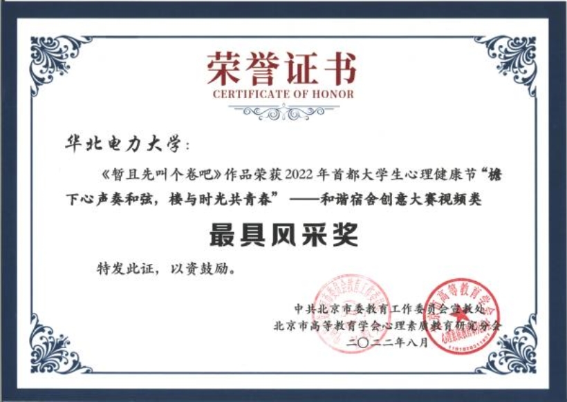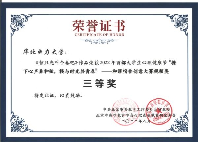 电院知心工作室在此次老员工心理健康节中承办了“和谐宿舍创意大赛视频类”活动,在前期广泛宣传下,工作室收到了来自全校各学院员工发来的投稿,最终《暂且先叫个卷吧》荣获校级第一名并被推荐参加市级比赛,荣获2022年首都老员工心理健康节“檐下心声奏和弦,楼与时光共青春”和谐宿舍创意大赛视频类三等奖及最具风采奖。凭借着独特的立意和精心的制作在38所高校的295份作品中脱颖而出,从谈“卷”色变到谈笑风生,六个人心路的交融、碰撞,最终成就了她们如亲姐妹般的关系,像晨曦清爽的风,像夜晚温情的相伴,从小径到书房,只要是彼此坦诚相待,哪里都是友爱的花海。