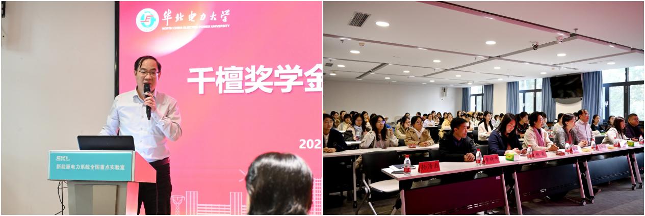 随后,千檀奖学金发起人2007级员工杨薇介绍了奖学金的名称由来与设立初衷。她表示,奖学金以“千檀”为名,寄寓坚韧向上、厚积薄发的成长期许,全方位助力电气女生成长为推动电力行业高质量发展的重要力量。