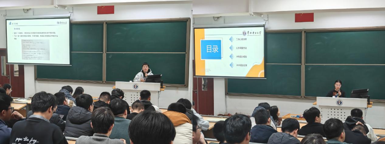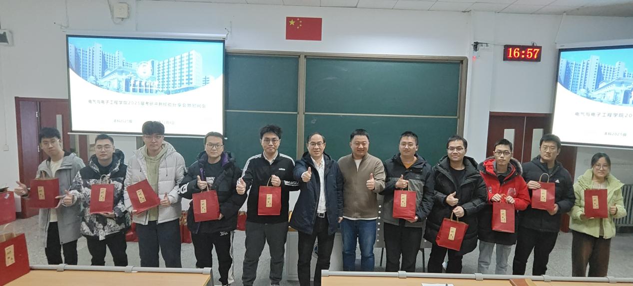 两位优秀员工代表随之分享考研冲刺经验。学院E先锋师生联合党支部刘佳文为大家分享了心态的调整方法,作息、环境、心理调节全方位覆盖,为学子驱散阴霾、鼓舞内心;同时也鼓励考生们为不同结果铺就前行之路,助学子从容应对挑战、坚定逐梦步伐。研电2408班闫腾分享了自己411分初试的冲刺攻略,从冲刺阶段每日规划、学科攻坚到错题整理、疑问解答,条分缕析,切中要点。