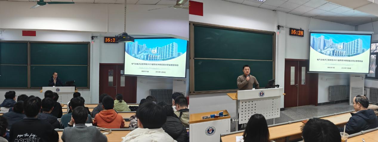 会议伊始,齐磊发表了热情洋溢的讲话,他对同学们在考研征程中付出的努力和汗水给予了高度赞扬,鼓励大家在最后的冲刺阶段坚定信念、咬紧牙关,相信自己长期以来的积累与沉淀必将在考场上绽放光芒。此外,他为同学们后续准备复试提出了殷切建议,希望大家提高对复试的重视程度,在预估分数后尽早联系导师,自荐邮件要规范认真等。王栋梁对同学们表达了衷心的祝福,并表示学院会全力为大家的考研之路保驾护航,无论是学习资源的调配,还是生活方面的保障,都会做到无微不至,让同学们无后顾之忧,安心备考。