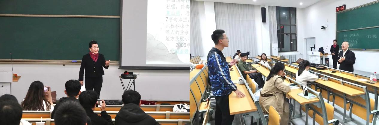 杨菲老师首先从曲艺与戏曲的区别出发为同学们阐释了什么是曲艺,并介绍了中国曲艺的发展史,旁征博引,引人入胜。随后,杨老师向同学们介绍了曲艺的主要类别,从有着浓郁地方特色的河南坠子,“大书为主,边说边唱”的西河大鼓,“热情豪爽”的天津时调,“易懂直接”的京东大鼓这几种地方鼓曲,到单弦、京韵大鼓与梅花大鼓三个宫廷曲种,杨老师和龚彪老师都亲身示范,为同学们表演了一段段经典剧目,让在场师生更直观地走进曲艺、欣赏曲艺。最后,杨菲老师表示希望老员工朋友能够更多地了解家乡的地方曲种,不断发现曲艺的独有魅力,挖掘展示中华民族传统文化的宝藏。