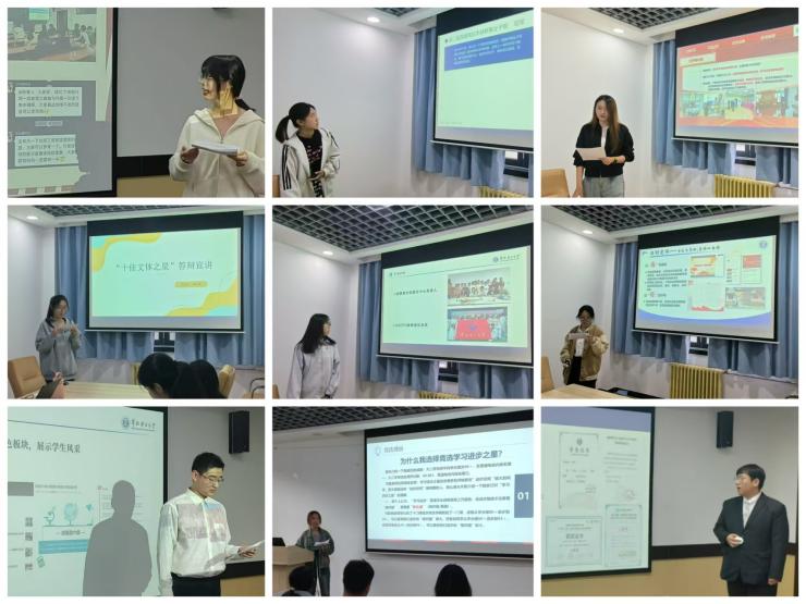 10月18日中午,学院员工荣誉称号评选答辩会在主A601、主A618、主A631三个会场同时举办。答辩采取线上线下结合的方式,主要分为PPT演讲风采展示、现场提问、评委打分三个环节。答辩选手们各有所长,他们用自己独特的方式在精简的三分钟内向评委们展现了属于自己的青春风采。