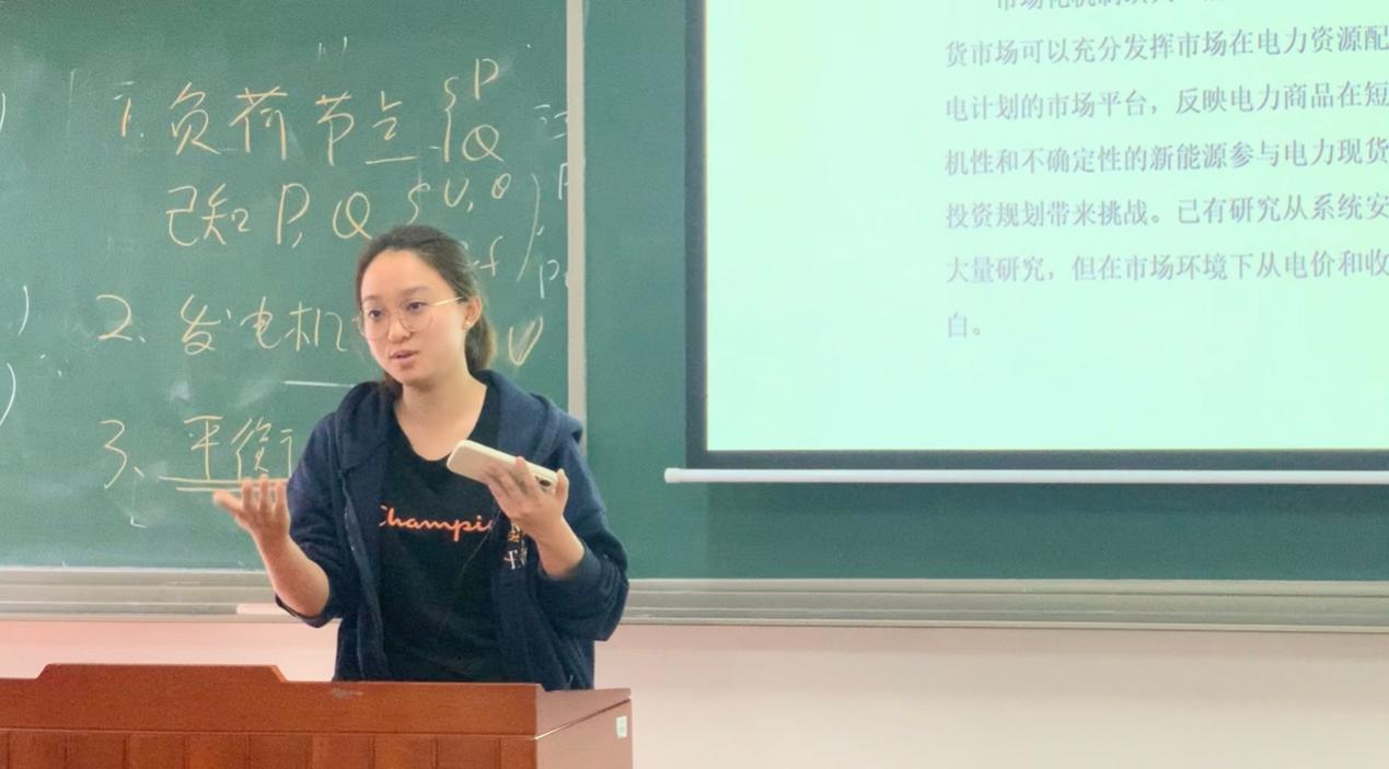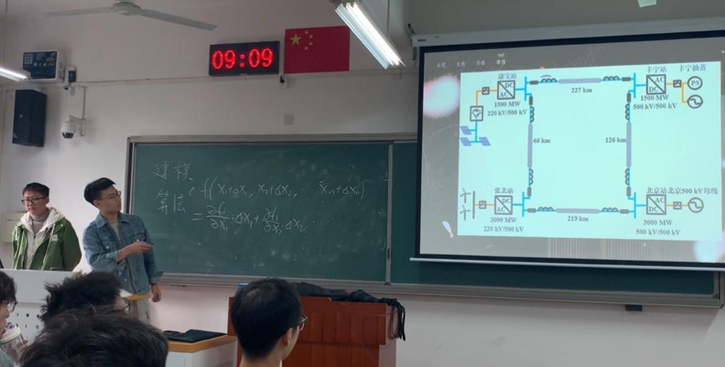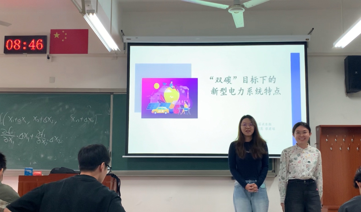 寄存器组解说题目是《基于人工智能应用下的新型电力系统发展的研究》,小组用新颖的方式,解说了人工智能在新型电力系统中的广泛应用前景,探讨新型电力系统与人工智能的现状,挑战和未来发展趋势。小组成员通过情景演绎的方式,与电分课程知识结合,与观众产生共鸣,给观众留下深刻印象。