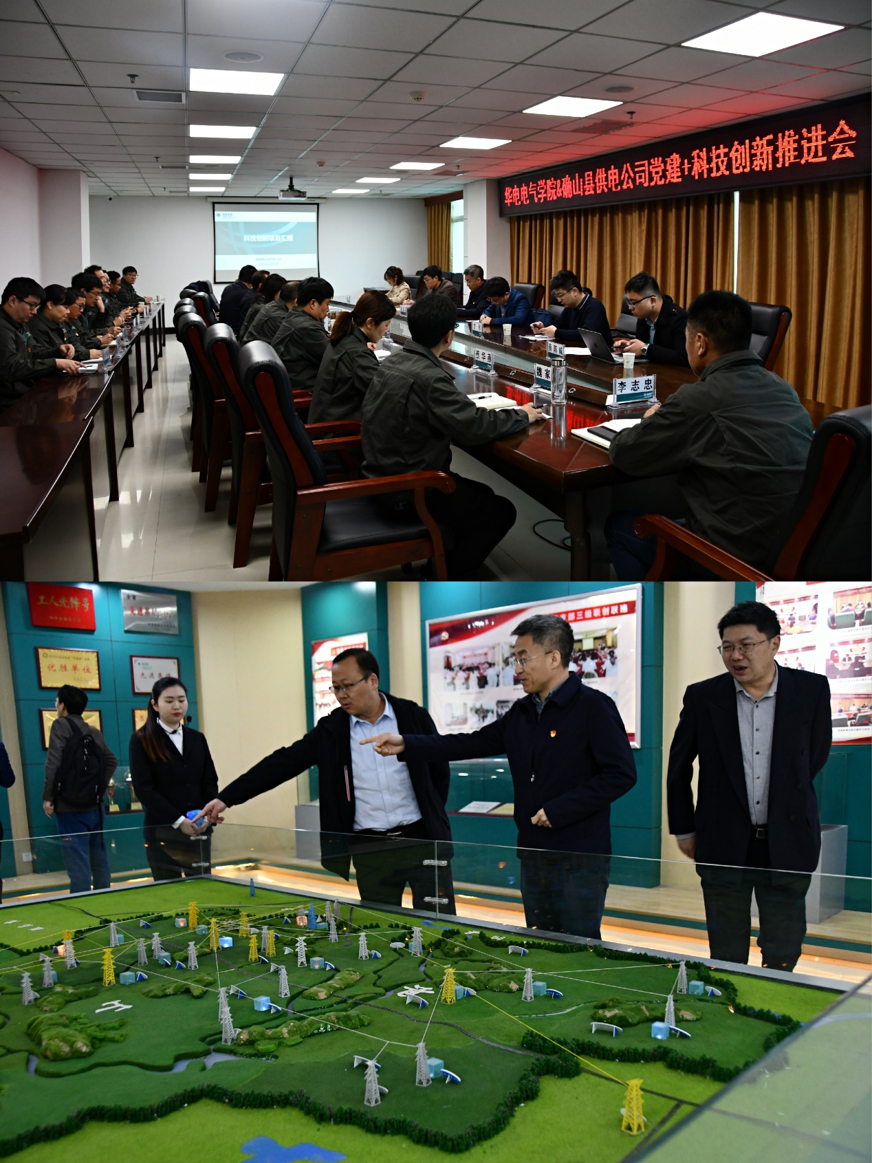 随后,学院调研团与国网确山县供电公司党委举行党建及科技创新工作推进会,国网驻马店市供电公司互联网部主任李明明、互联网部专责闫娇等市公司代表,国网确山县供电公司总经理、党委副书记张华伟,党委书记、副总经理张磊光等相关人员出席活动。双方各自介绍了党建与业务情况,并就结对共建与科研项目合作等进行深入交流。国网确山县供电公司对学院调研团一行表示热烈欢迎,对学院心系确山、真情帮扶的有力行动表示感谢。电气学院正处级组织员张宝良表示,betway西汉姆联官网此行是按照大学党委工作部署,切实落实周坚书记、杨勇平董事长关于校地双方统筹推进定点扶贫和乡村振兴工作重要指示的一次专项行动,将充分发挥学院的专业、人才、技术优势,精准对接当地供电局和村庄实际需求,开展“电亮确山乡村振兴”党建共建专项行动,为巩固和拓展确山县脱贫攻坚成果,推进大学定点扶贫工作与确山县乡村振兴有效衔接提供坚强支撑。曾博、陈艳波、唐志国等还就“基于边缘计算与AI技术的变压器寿命预测及故障预警系统的研究与应用”等多个科技项目与确山县供电公司参会人员交流研讨,达成了初步合作意向。