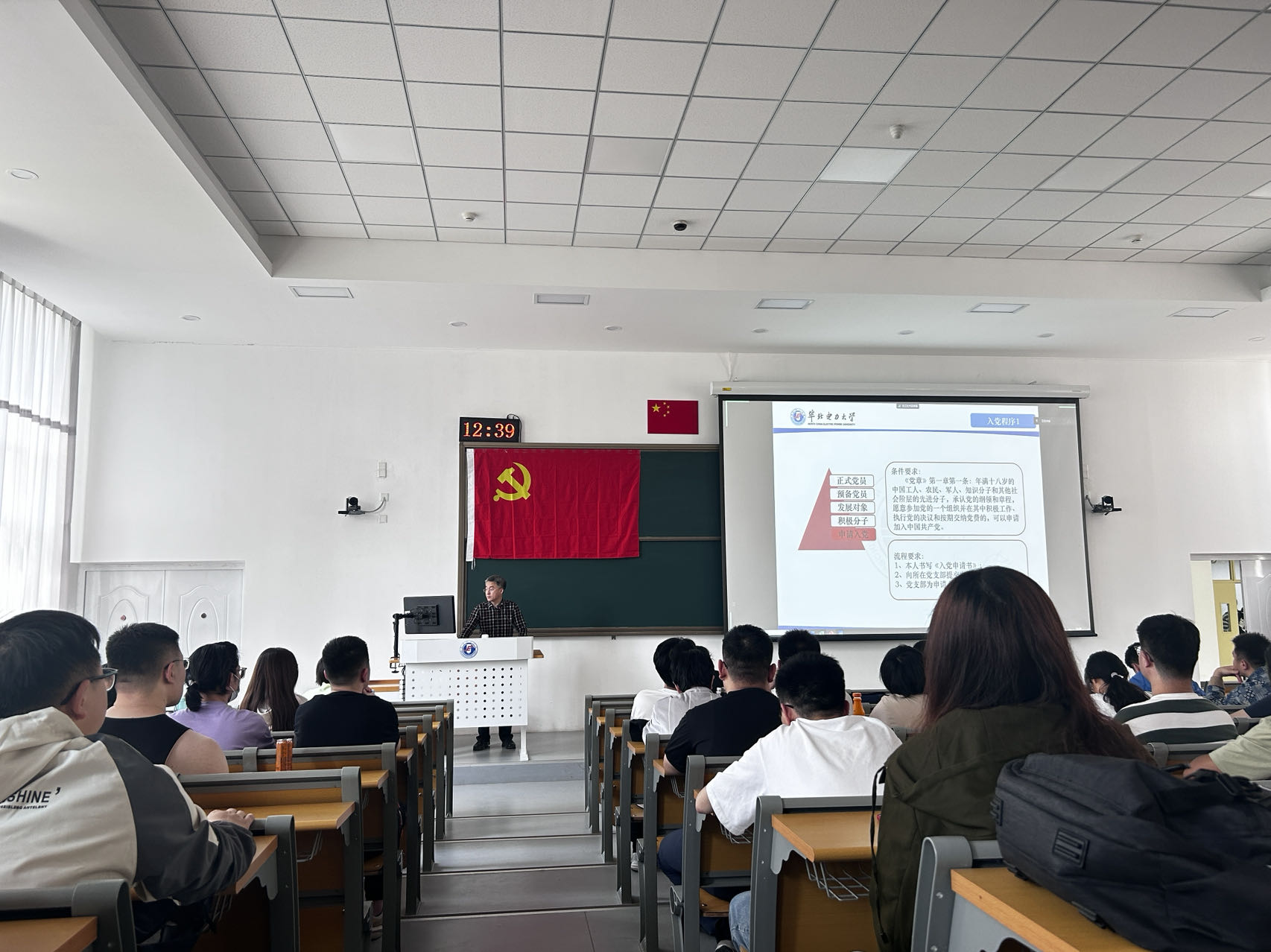 2023年5月10日中午,betway西汉姆联官网第55期入党积极分子培训班第三次党课在教一12阶举行。学院正处级组织员张宝良以“入党的规定和程序”为题,从“入党程序及要求、思想入党和组织入党、以实际行动向党组织靠拢”三方面来讲授党课,辅导员王倩参加了本次党课培训。