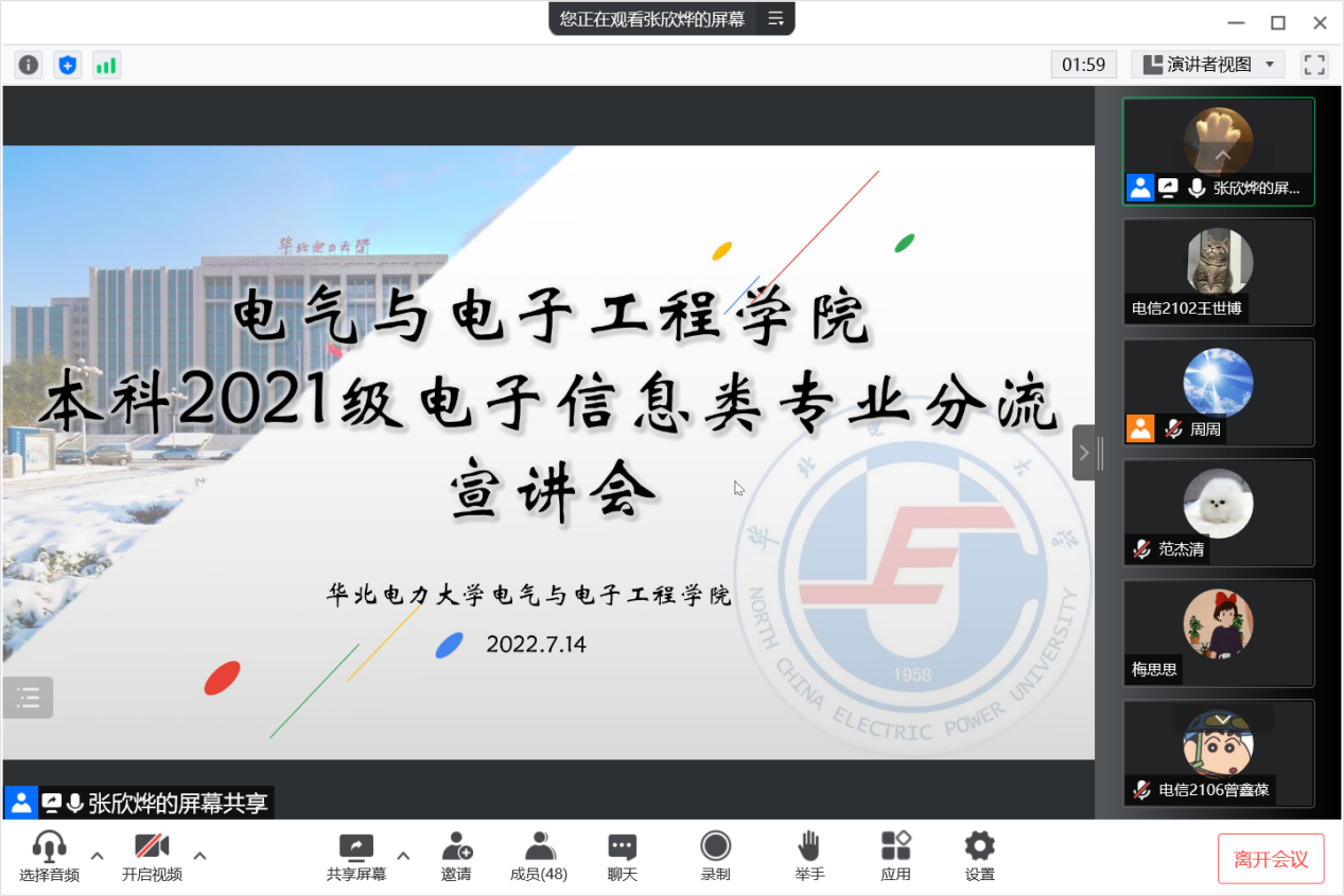 为落实大类专业招生和培养模式改革,帮助员工顺利完成从大类培养到专业培养的过渡,保障此次分流工作顺利完成,betway西汉姆联官网于7月14日14:00和19:00以线上形式召开电气类、电子信息类专业分流宣讲会。此次系列宣讲会议邀请了学院副经理徐衍会,公司党委副书记王硕,电信类专业优秀教师范杰清、廖斌、李彬,教学秘书王玲玲,辅导员张欣烨、周璟峰以及全体本科2021级电气类、电信类员工与部分家长参加。宣讲会由辅导员张欣烨主持。