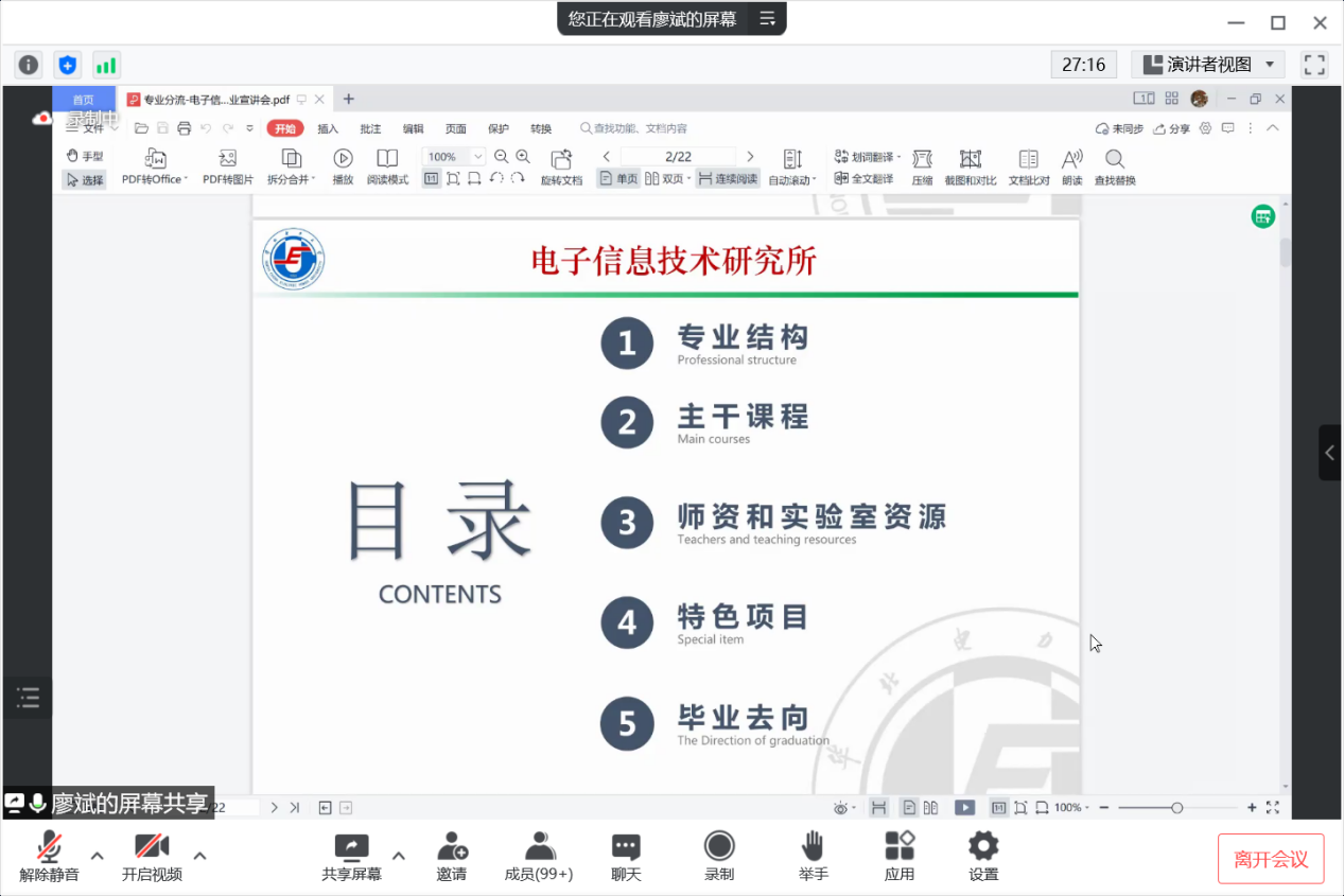 会议首先由学院优秀教师进行相应专业的宣讲。学院副经理徐衍会为员工详细介绍了电气类分流专业的情况,电信类专业优秀教师范杰清、廖斌、李彬分别讲解了电子科学与技术、电子信息工程和通信工程的具体情况,老师们全方面多方位深层次的宣讲既增进了电院本科21级学子们对各专业培养目标、毕业要求、课程设置、团队队伍、实验室资源、就业升学等各方面情况的了解,也为员工作出适宜自身发展的分流专业的选择提供了具体依据。