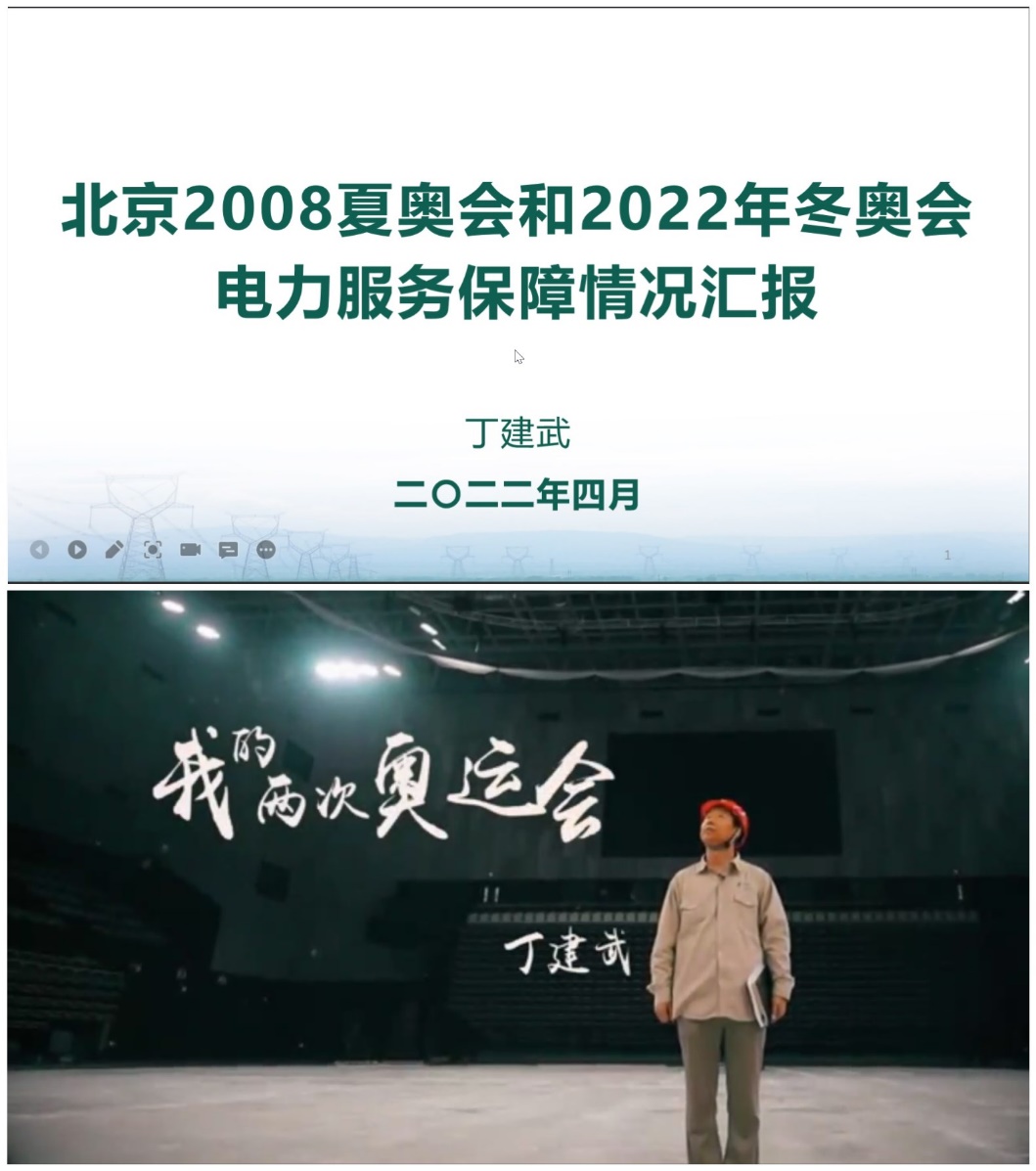 丁建武首先邀请大家一同观看了新华社采访他冬奥保电工作的一则短片,让大家对于冬奥保电工作有一个基本的了解。并介绍了自己深度参加2008年夏季奥运会和2022年冬季奥运会电力系统保障工作的情况并对两次参与的感受进行比较。之后丁建武详细介绍了冬奥保电系统的电网规划与场馆建设,并介绍了为克服高海拔、低气温等严酷自然环境而研发的多种耐寒高特种供电设备,与为实行绿色智能低碳的宗旨而采用的绿电供应方案。