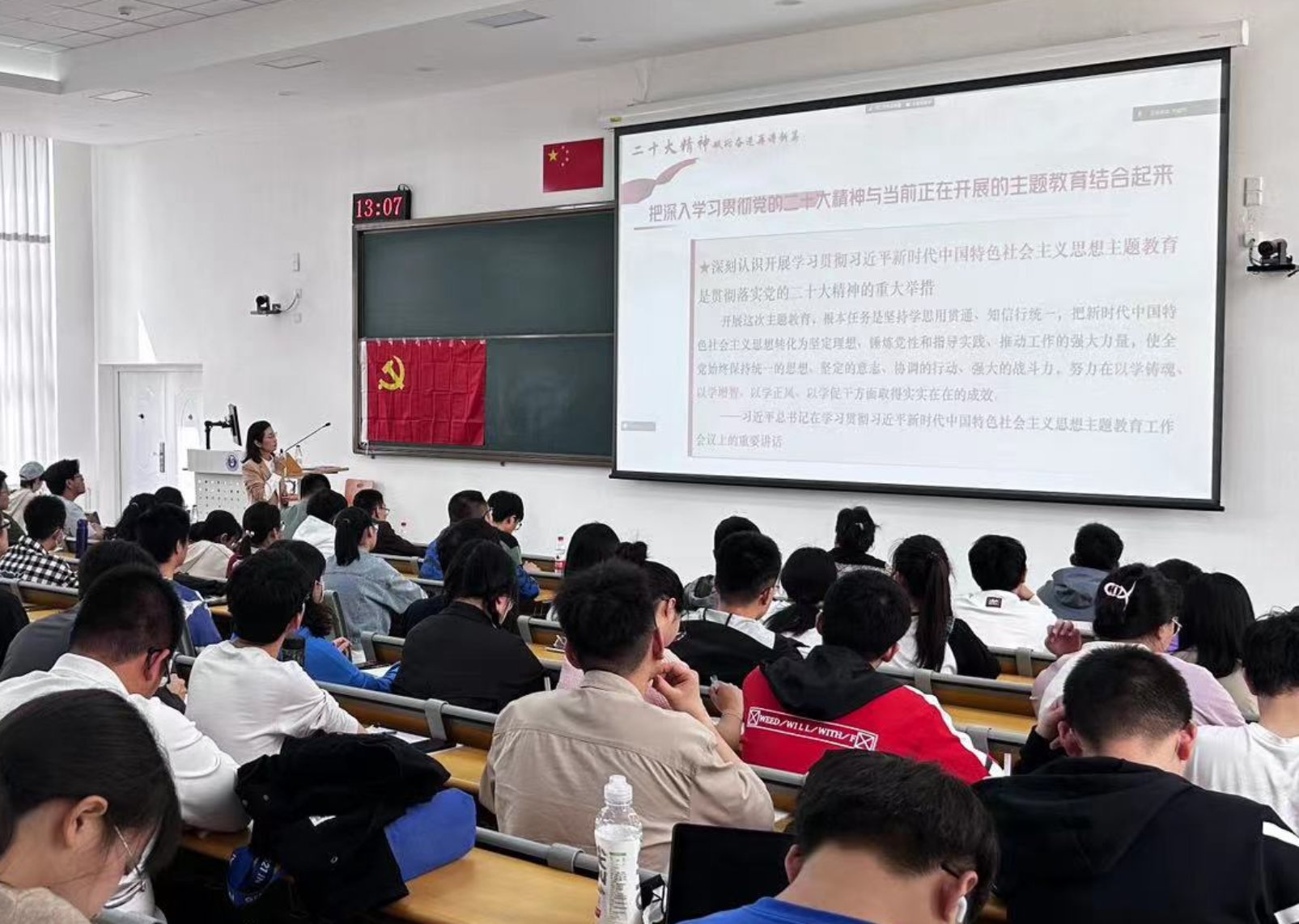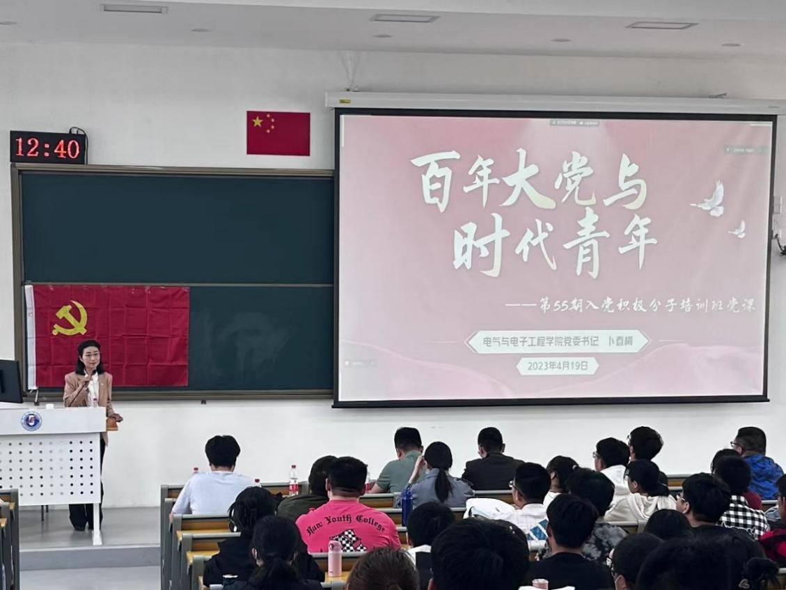 王栋梁详细介绍了培训计划及课程安排,强调了学习要求和考核办法。在热烈的掌声中,卜春梅为全体学员讲授第一次党课。党课以“百年大党与时代青年”为主题,从“我们的组织、二十大精神、殷切的希望、身边的榜样”四个方面进行阐述。
