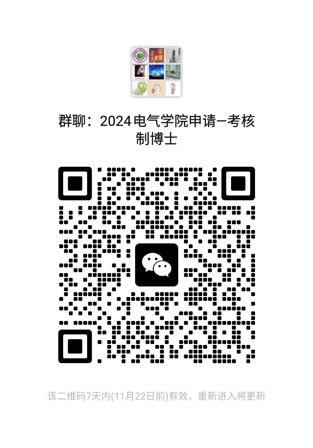 3.请所有报名考生务必扫描附件二维码进入“2024电气学院申请-考核制博士”微信咨询群。