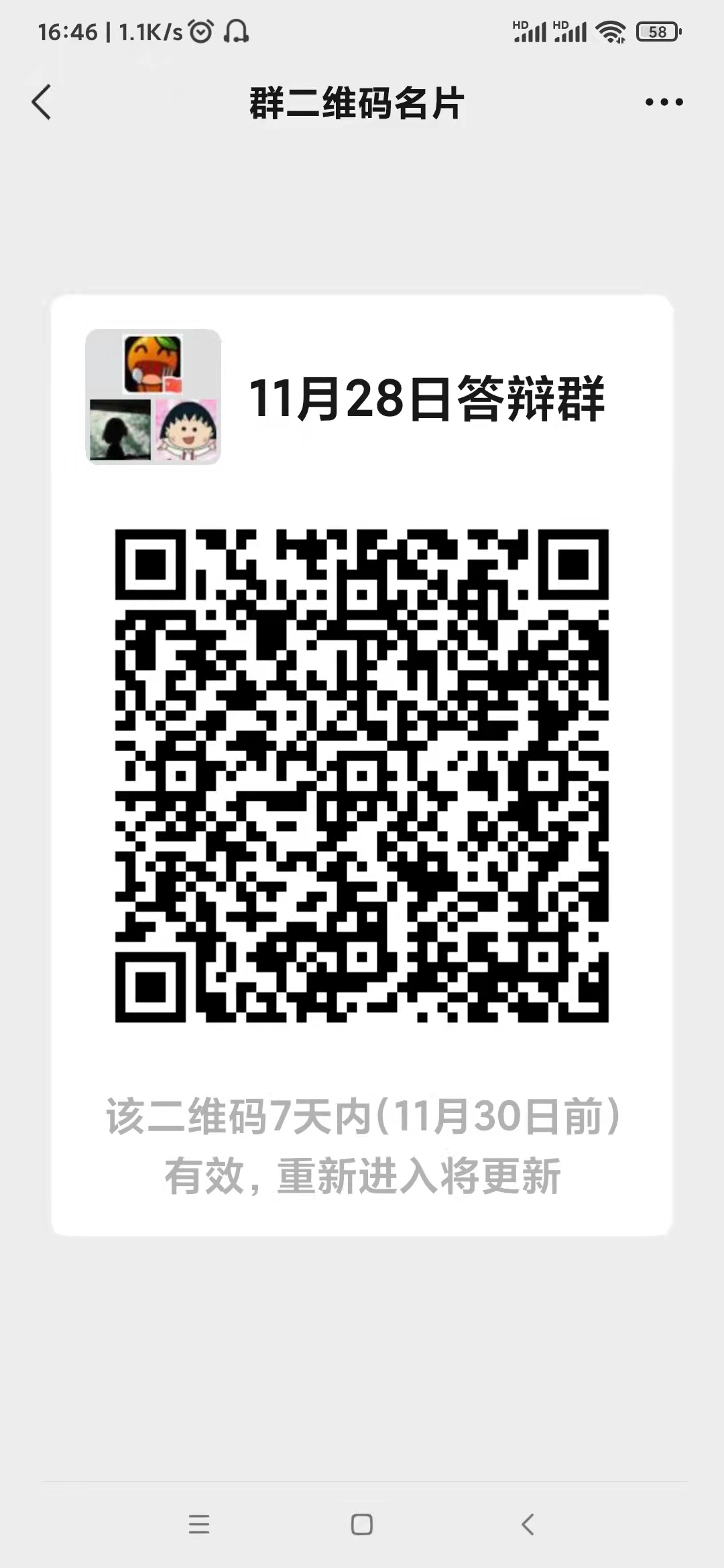 答辩群二维码:见附件2。答辩相关事项及要求将由答辩秘书在群里发布通知,请尽快加入答辩群。